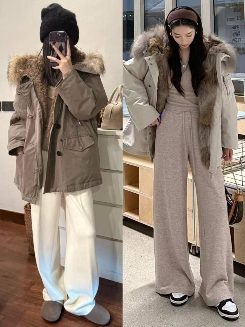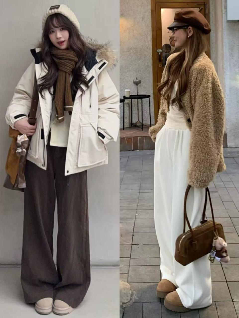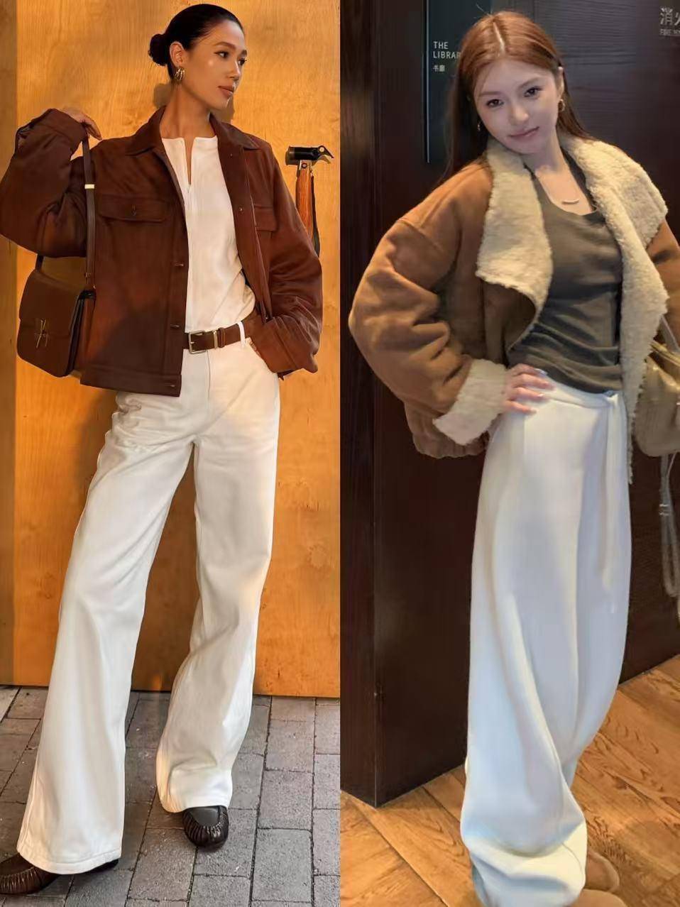 我们选择的阔腿裤就是要那种休闲风才行,就像上面这条白色和燕麦色的,再加上一双平底单鞋或者小板鞋,加上冲锋衣外套,让你穿出休闲解日常的造型。
