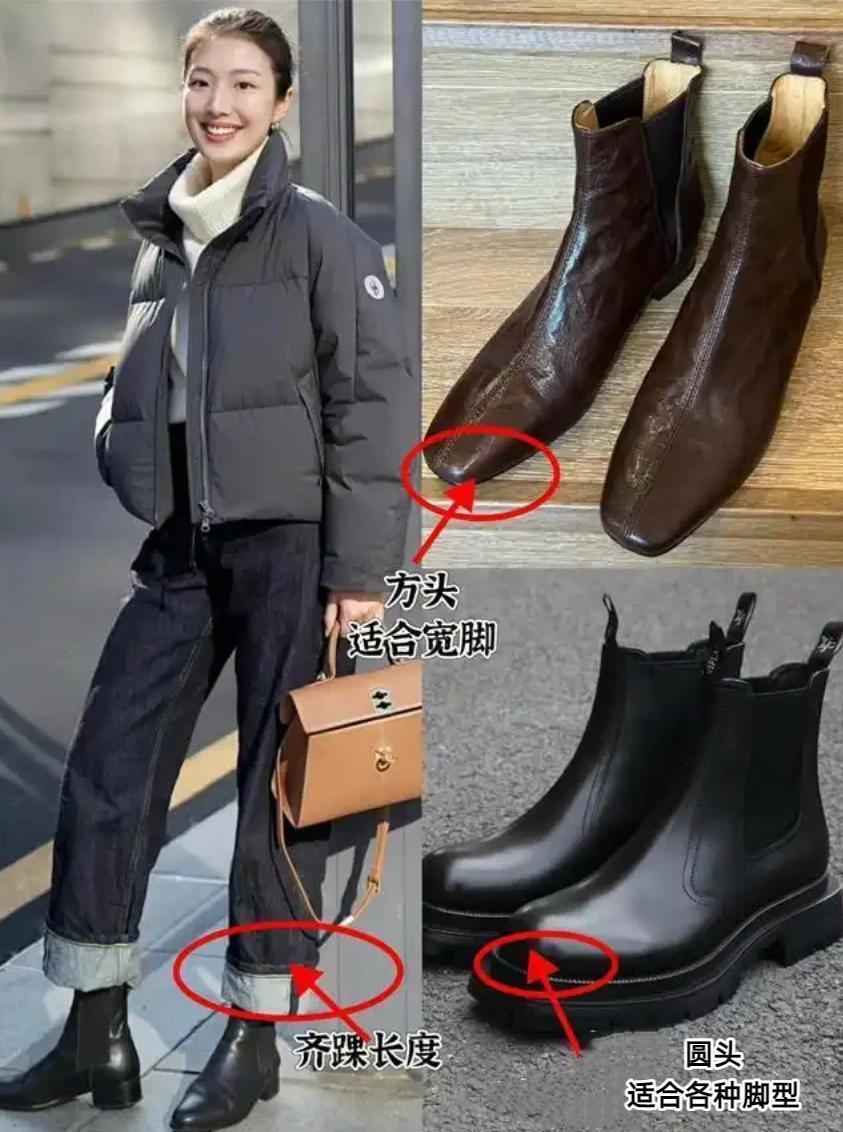 也不是说你是要买一双短靴,穿在脚上就可以让自己变得很飒爽,比如说方头款式的短靴会更适合宽脚,圆头的短靴适合各种脚型,比较百搭的款式。