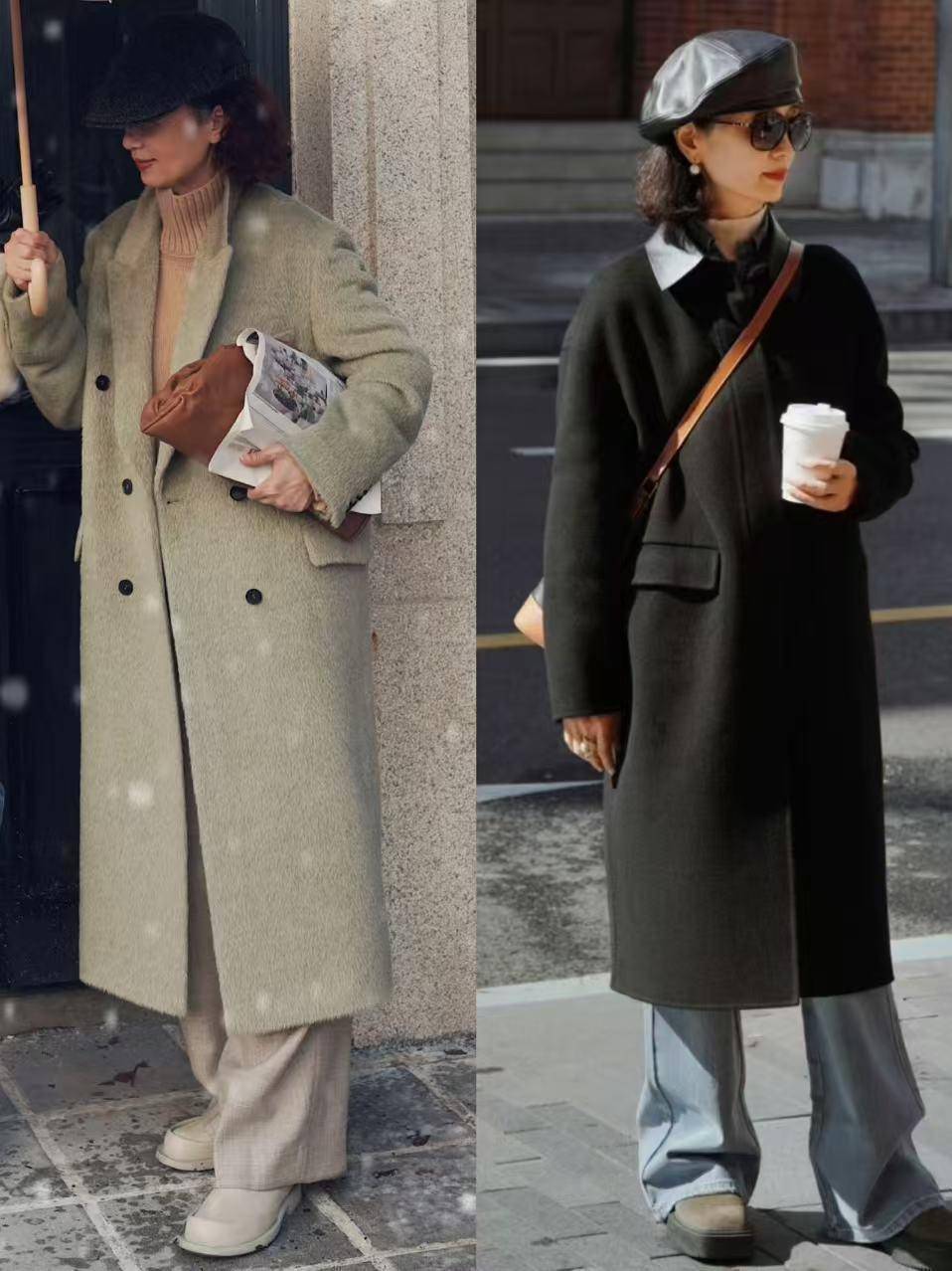 tips③大衣+牛仔直筒裤+马丁靴