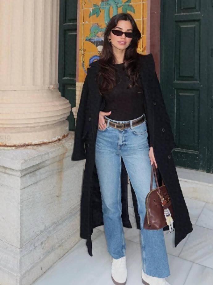 想要复刻selinyagcioglu的时髦感,核心就在于掌握她“基础款为底、特色款点睛”的搭配逻辑。她的衣橱里没有过多浮夸的设计,反而堆满了白衬衫、简约针织衫、直筒牛仔裤、基础款风衣这类经典单品——这些人人都有的基础款,在她的搭配下总能焕发新的生命力。她擅长以基础款搭建造型基底,再用少量带设计感的单品打破平庸,比如用黑色基础高领衫搭配阔腿牛仔裤,外搭一件复古格纹西装,脚下踩一双小白鞋,基础款的沉稳与特色款的个性相互融合,既日常实穿,又轻松避开造型的沉闷感,普通人照搬思路就能穿出不错的效果。