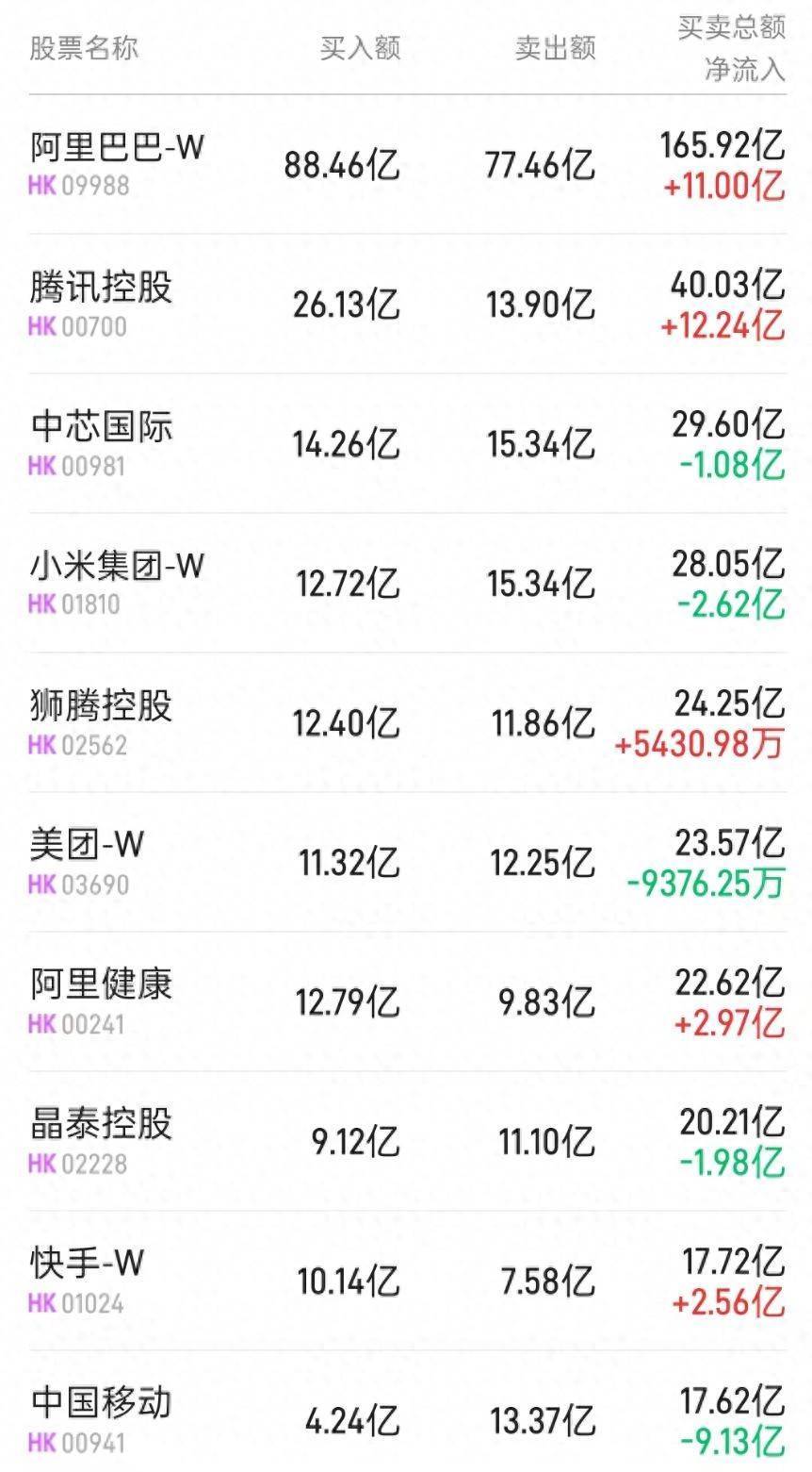 此外,狮腾控股(02562)获净买入1906万港元。而中国移动(00941)遭净卖出9.13亿港元。