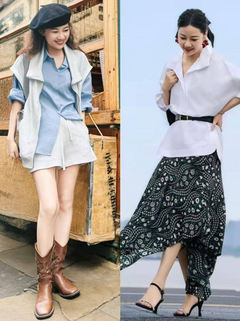 还有就是选择裙子的时候不能过长,到小腿肚的位置就可以,这个时候再穿上一款杏色的短靴,就能轻松提升气质。