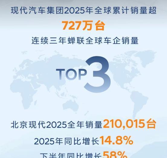 在合资品牌普遍承压、电动化与智能化竞争日趋白热化的2025年,北京现代交出了一份扎实的年度答卷:全年销量达成21万辆,同比增长14.8%。尤其下半年销量同比增长58%,展现出强劲复苏态势。