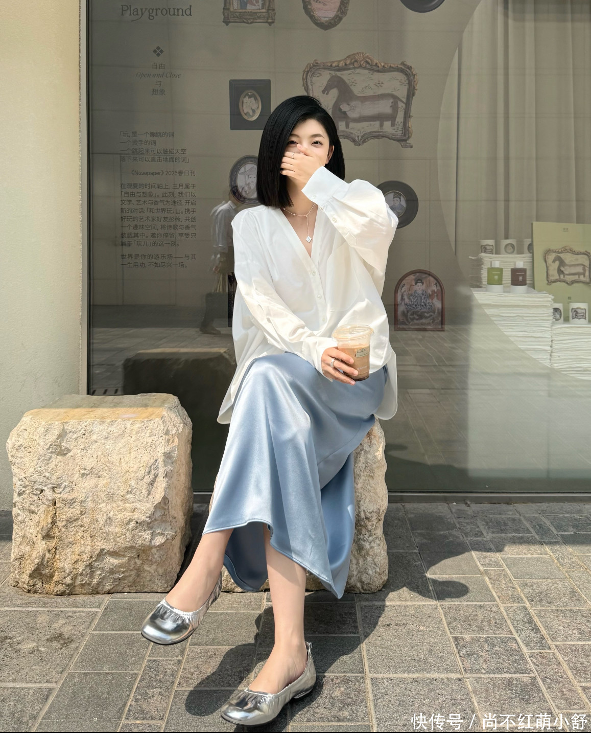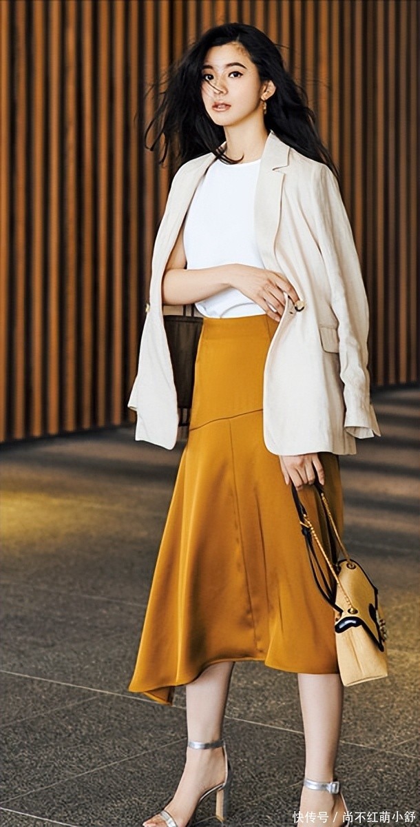 第四条:缎面/真丝半身裙 —— 低调的奢华想要在基础穿搭中瞬间提升品位和精致度?你需要一条有光泽感的裙子。缎面或真丝材质,那种温润如玉的光泽,是“好品味”的无声宣告。